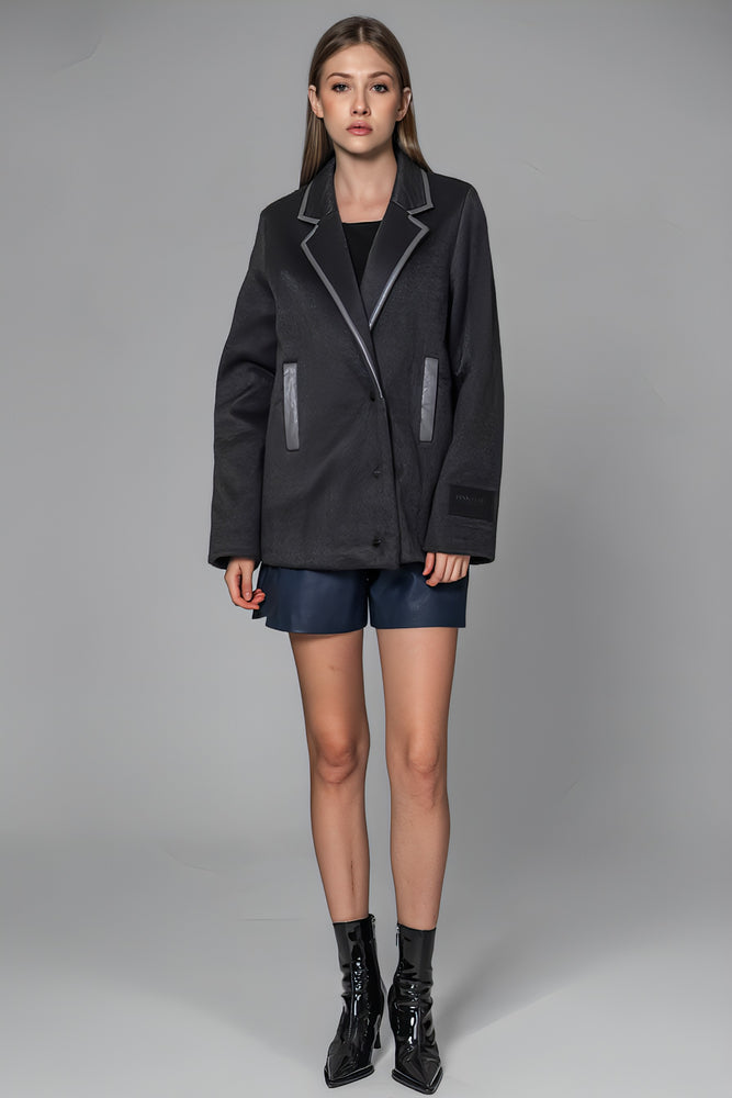 BLACK/GREEN TWILL COTTON TRENCH JACKET