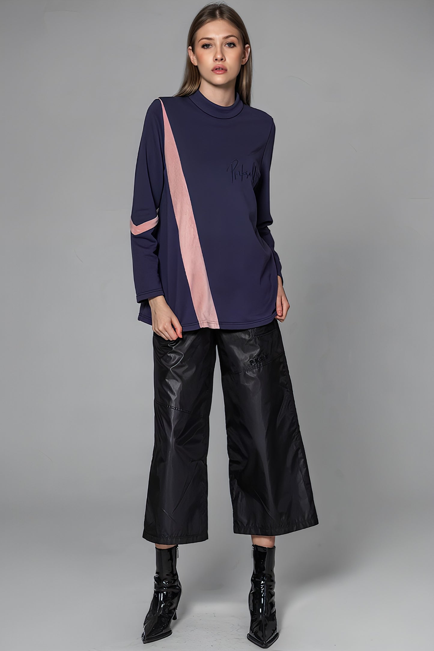 PURPLE/GREEN COLOR-BLOCK TURTLENECK SWEATSHIRT