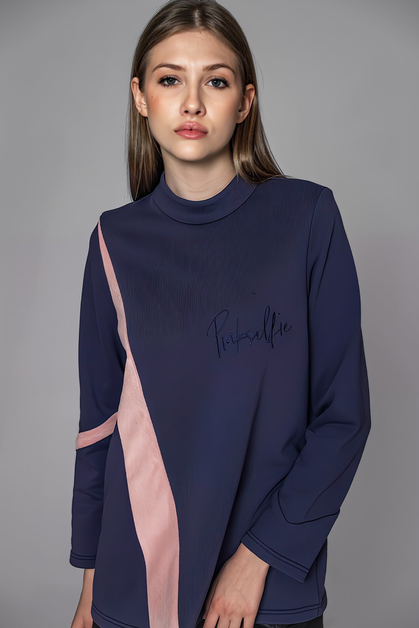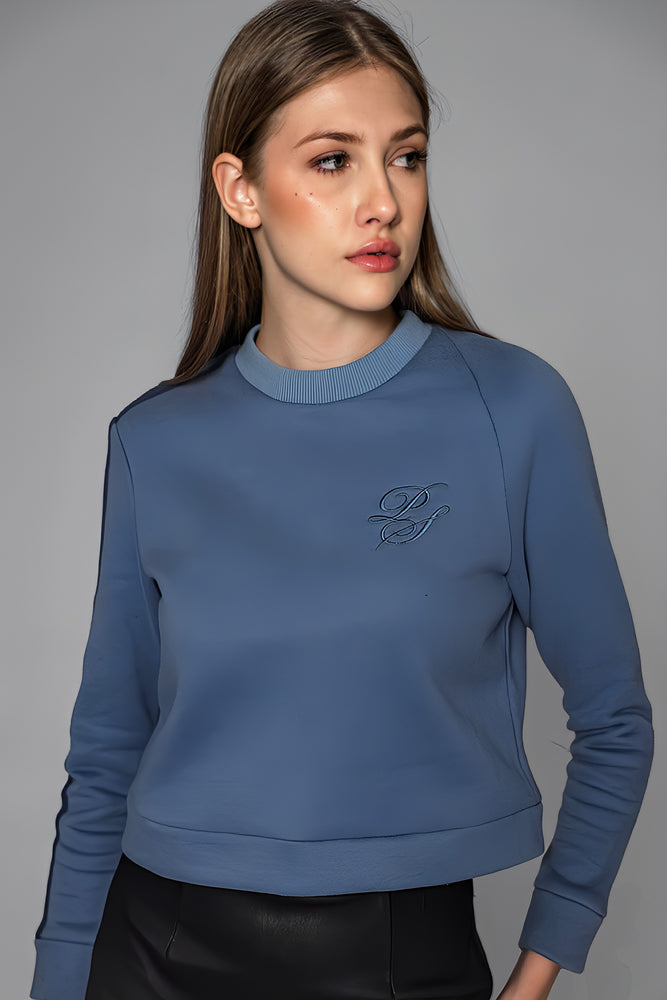 BLUE/GRAY RIBBED PANEL LONG-SLEEVE SWEATSHIRT