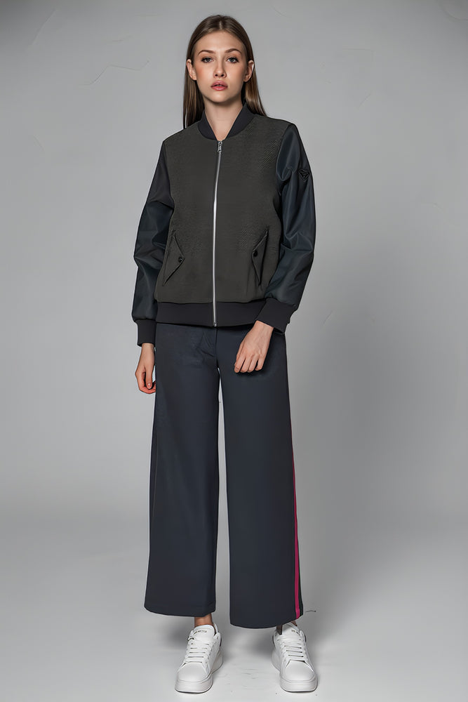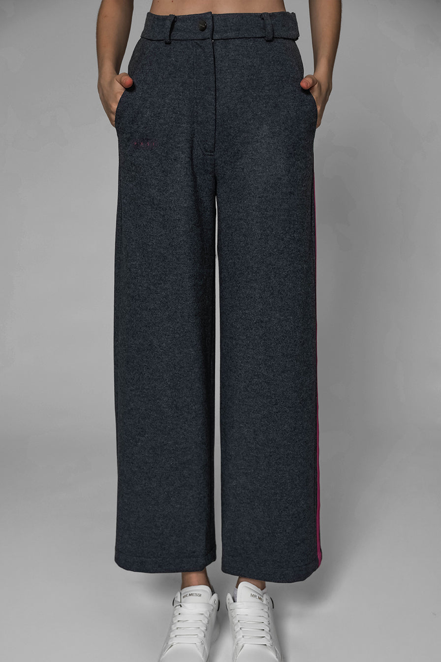 GRAY/BLACK WIDE-LEG WOOL PANTS