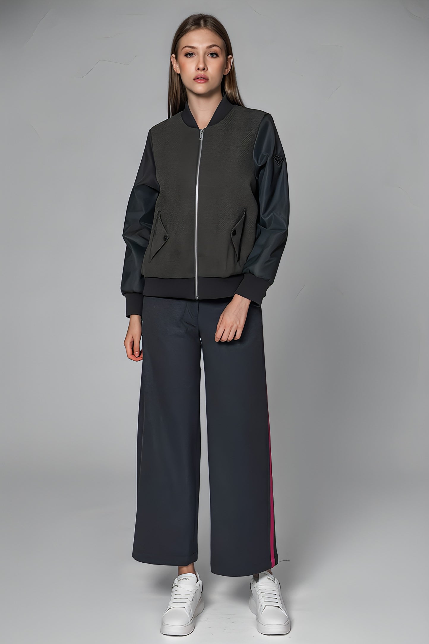 DARK GREEN/BLACK CURVED PANEL STRAIGHT PANTS