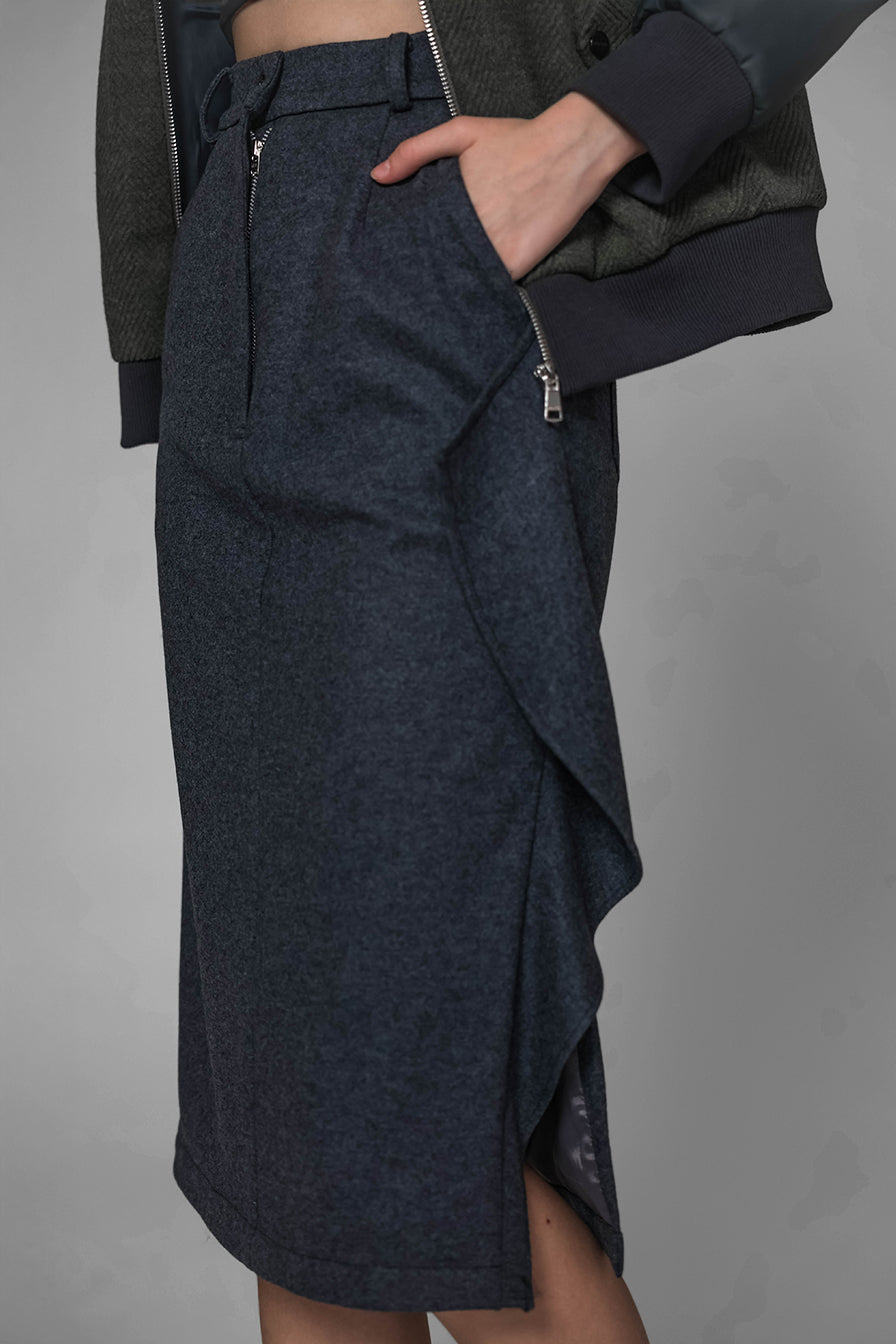 DARK BLUE HOUNDSTOOTH MIDI SKIRT