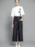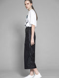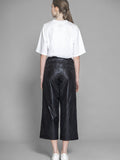 BLACK TRENCH COAT / GLOSSY BLACK COTTON ASYMMETRIC LOOSE PANTS