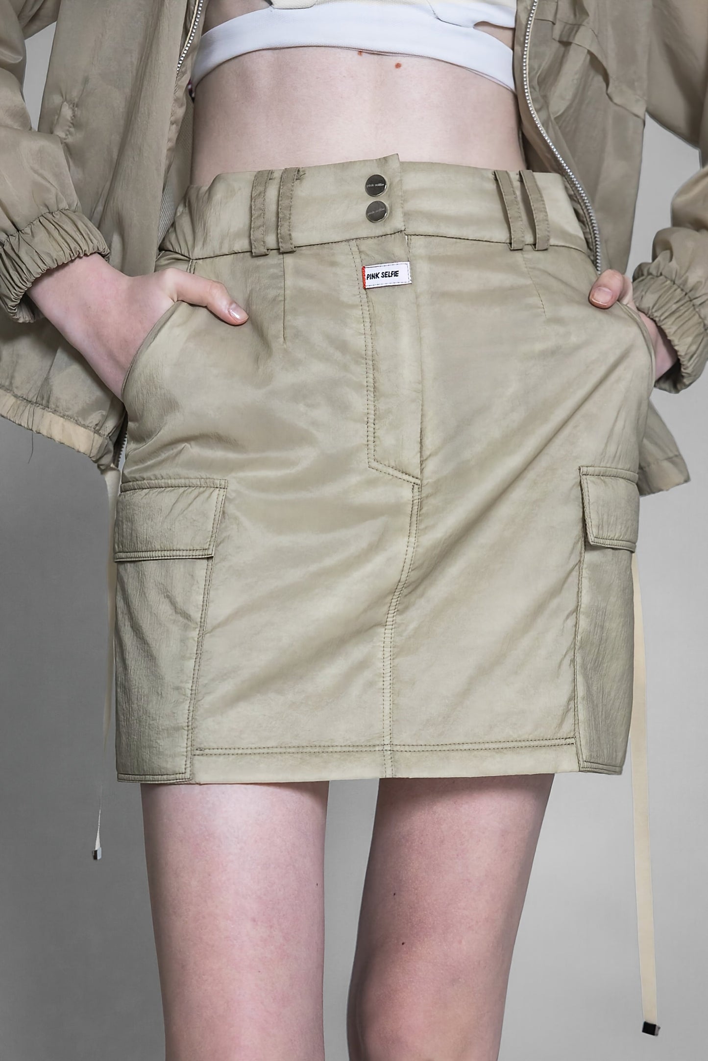 PINK BEIGE/DESERT KHAKI QUILTED TRENCH COAT SKIRT