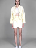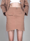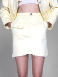LIGHT YELLOW / SKIN BROWN HEAVY COTTON GRADIENT WASHED DENIM SKIRT