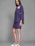 PURPLE COLOR-BLOCKED TRENCH DRESS