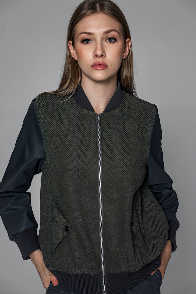 DARK BLUE TERRY CLOTH FITTED JACKET