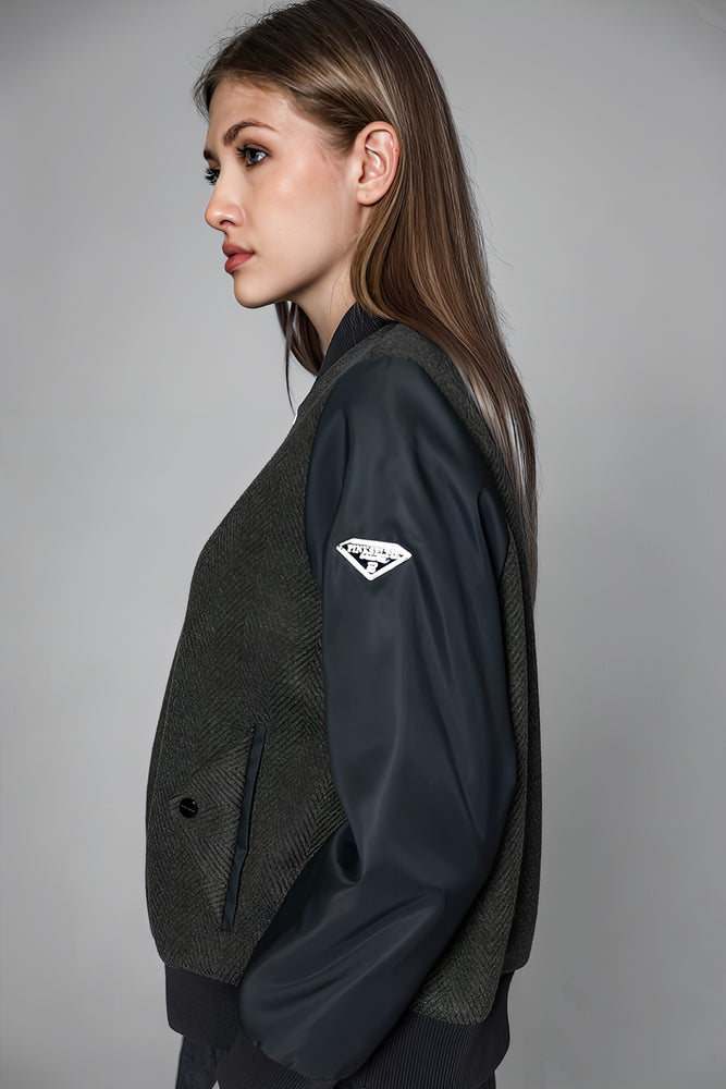 BLACK/GRAY TRENCH PADDED CROPPED JACKET