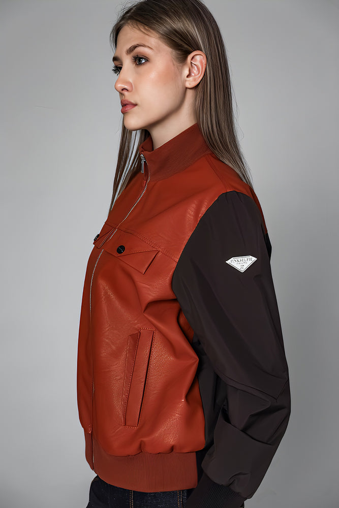 ORANGE/BLACK LEATHER-PANEL TRENCH JACKET