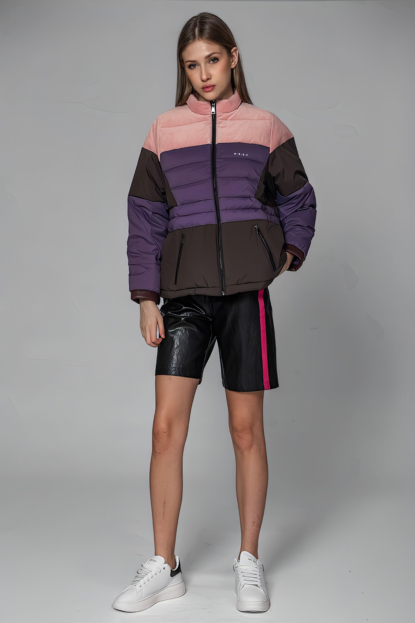 PURPLE COLOR-BLOCKED TRENCH HOODED JACKET