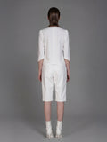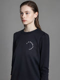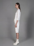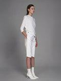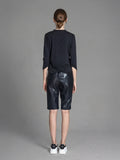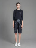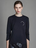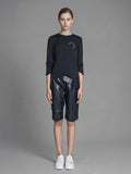 BLACK/WHITE FITTED CURVED SILHOUETTE THREE-QUARTER SLEEVE TOP
