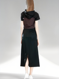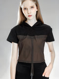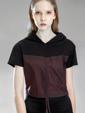 PURPLE/BROWN TRENCH PATCHWORK BLACK COTTON HOODED CROP TOP