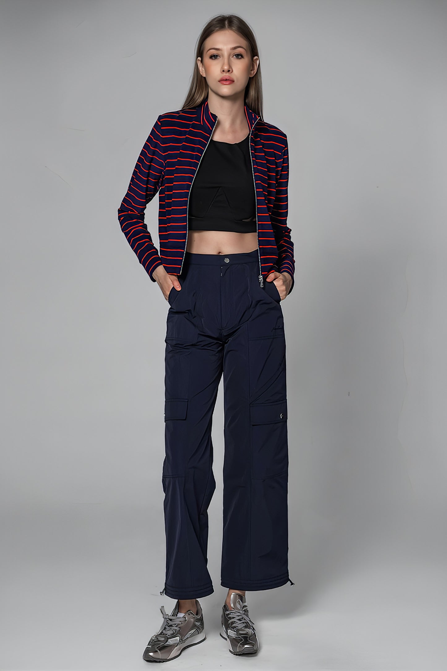 BLACK/GRAY TRENCH PADDED CROPPED JACKET