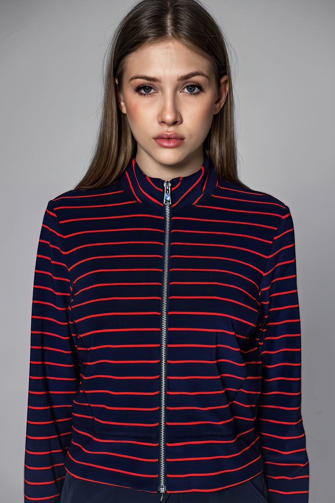 DARK BLUE TERRY CLOTH FITTED JACKET
