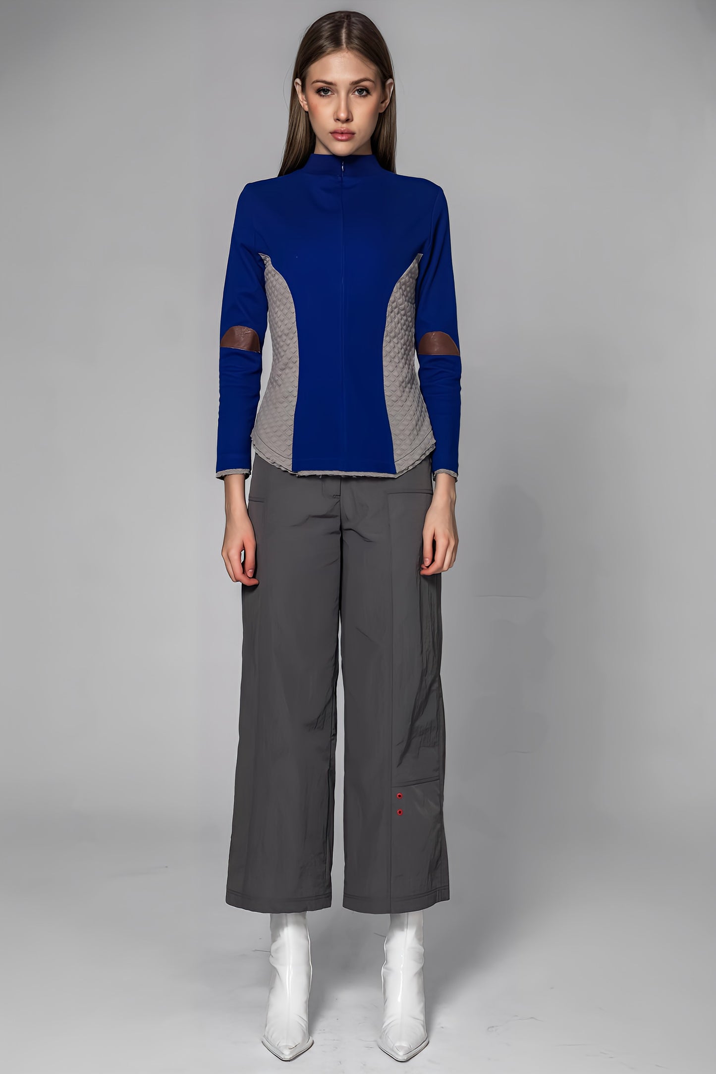 RED/BLUE KNIT HIGH-NECK FITTED TOP