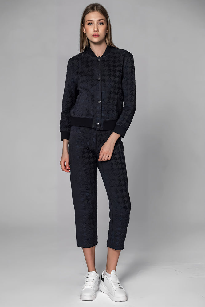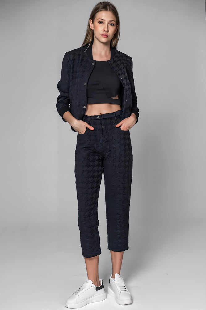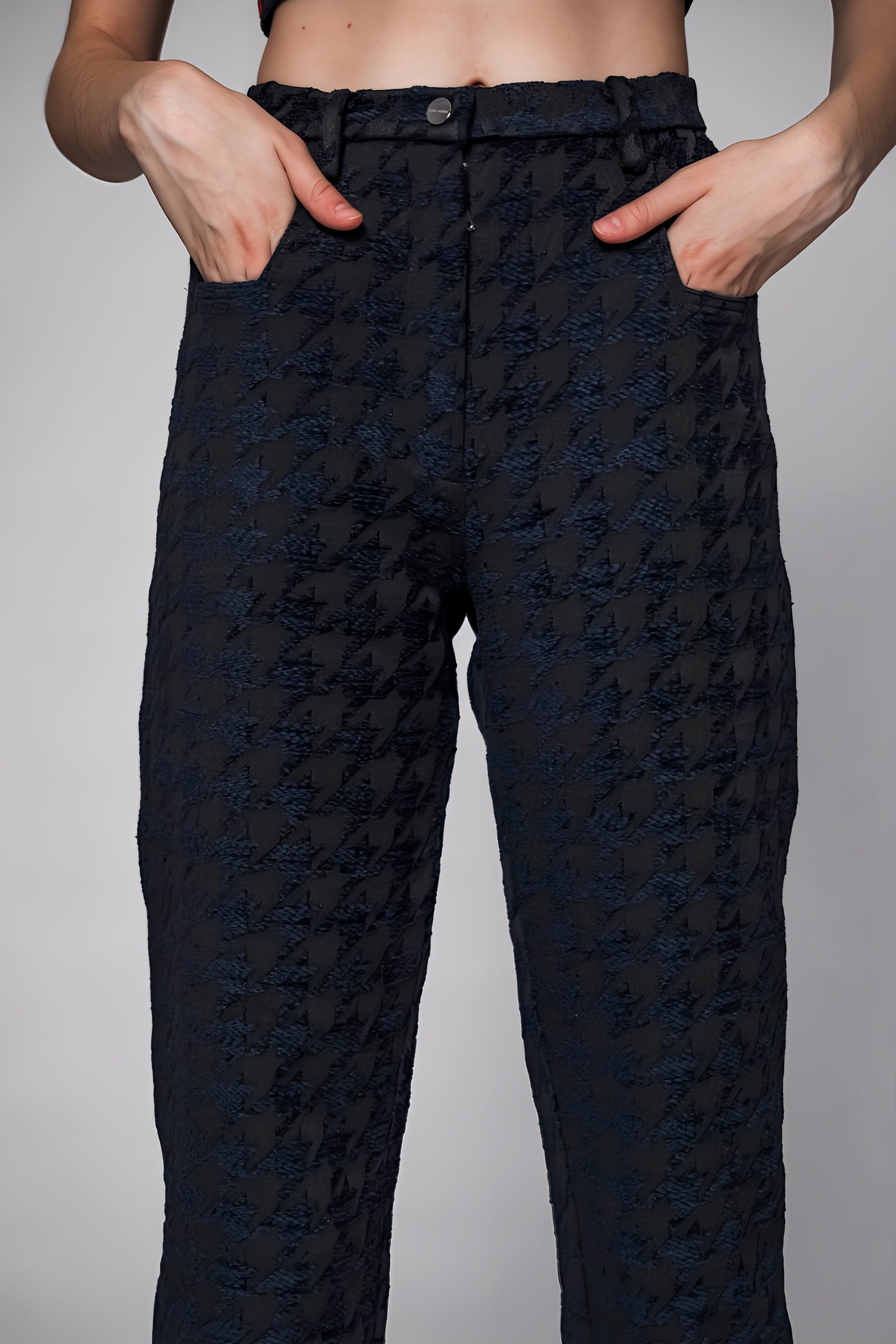 DARK BLUE HOUNDSTOOTH TAPERED PANTS