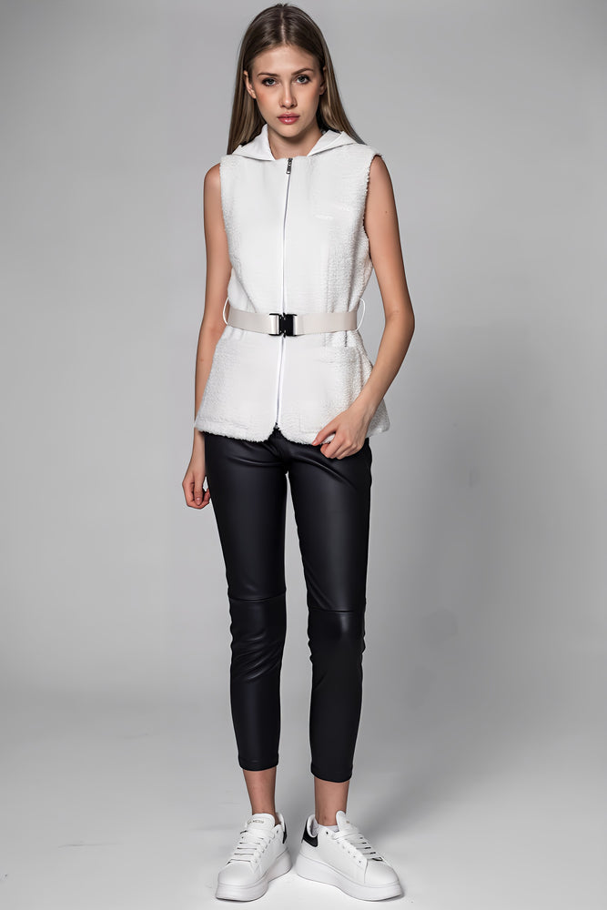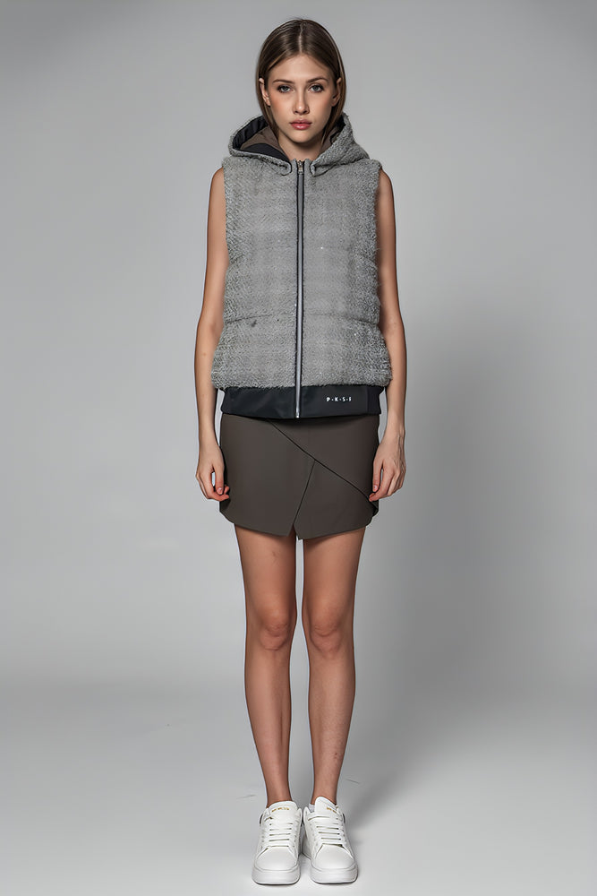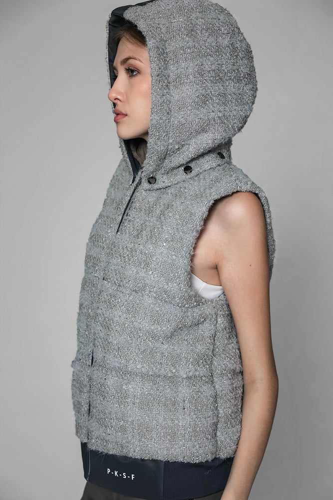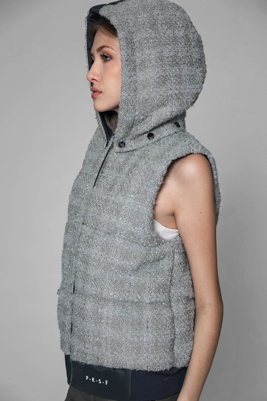 BLACK/WHITE TEXTURED WOOL-PANELLED HOODED VEST JACKET