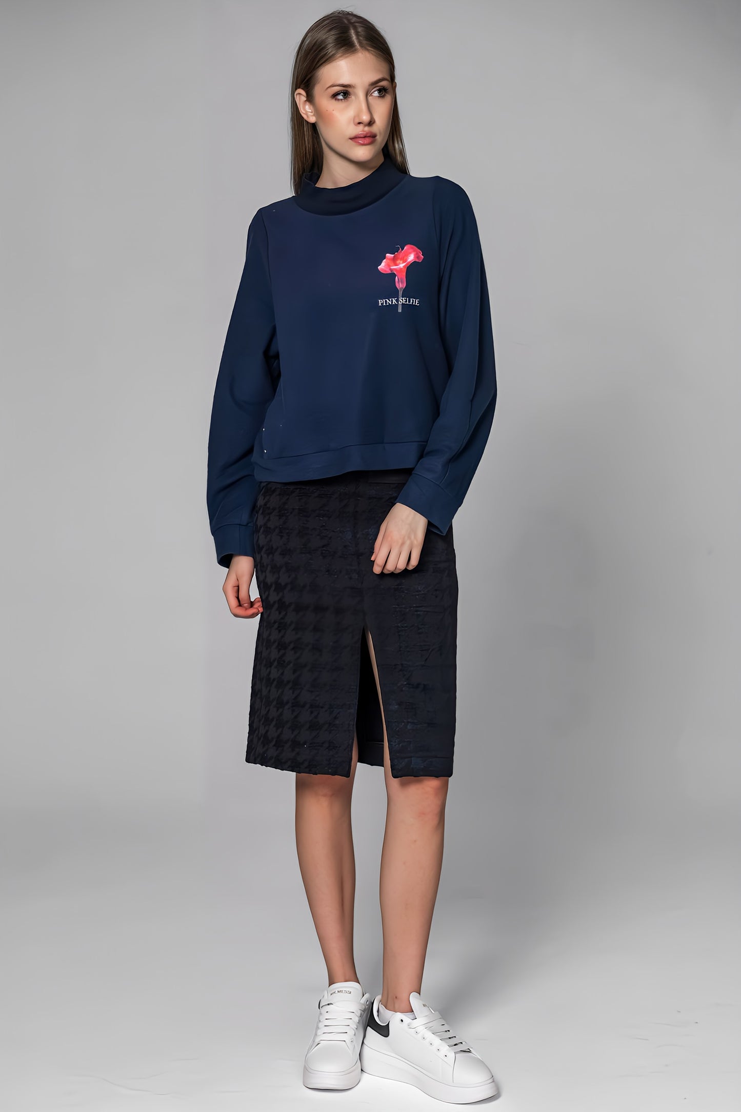 DARK BLUE FLAME LILY PRINT LONG-SLEEVE SWEATSHIRT