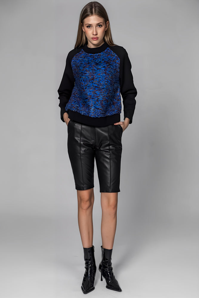 CROPPED PANELLED LEATHER SWEATSHIRT