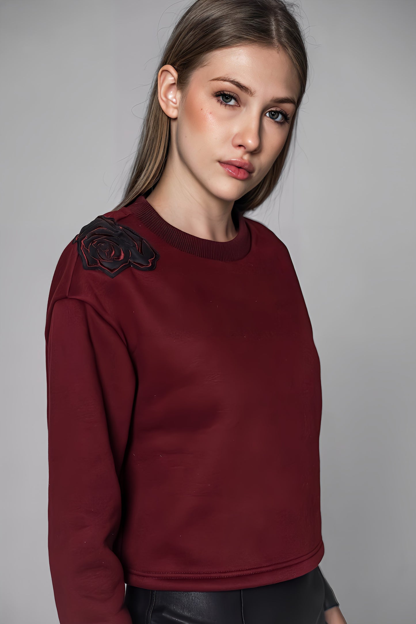PURPLE-RED/DARK BROWN ROSE LONG-SLEEVE SWEATSHIRT