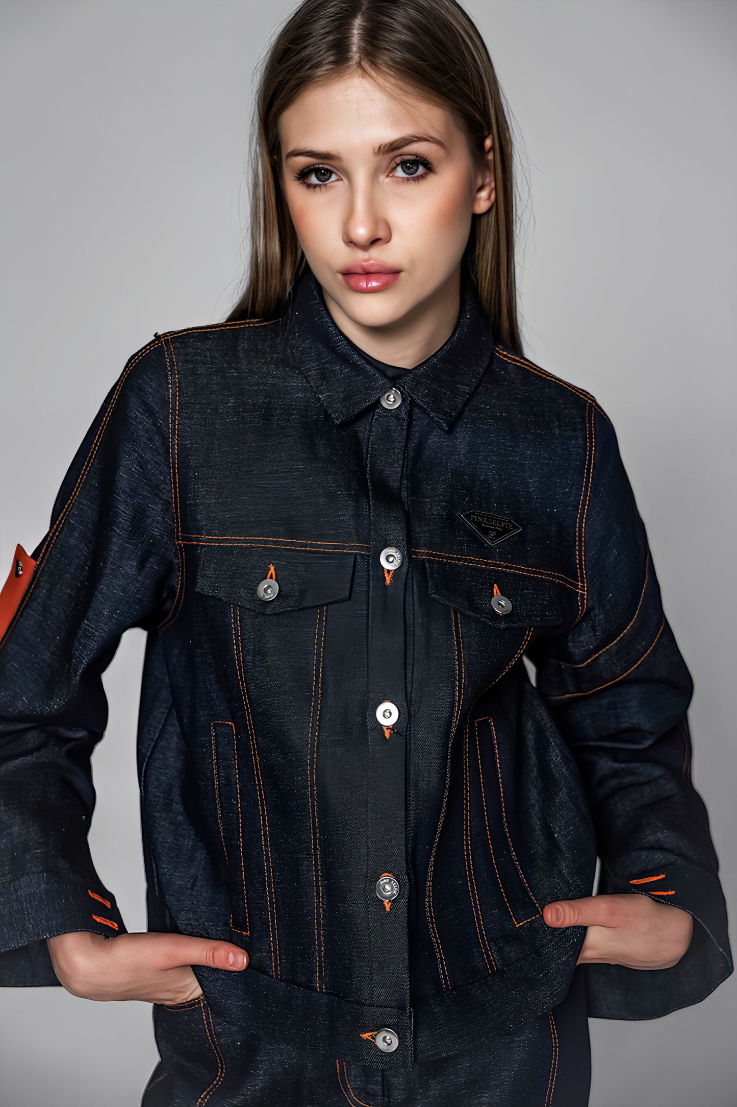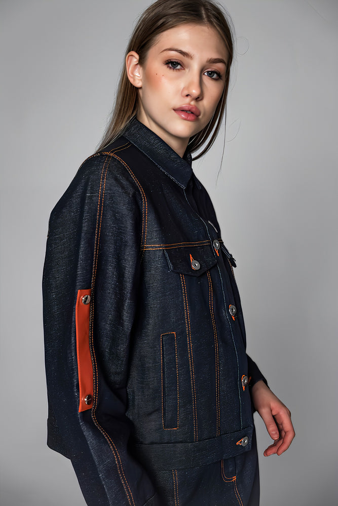 PEACH/BLUE TEXTURED WOOL-PANELLED LEATHER JACKET