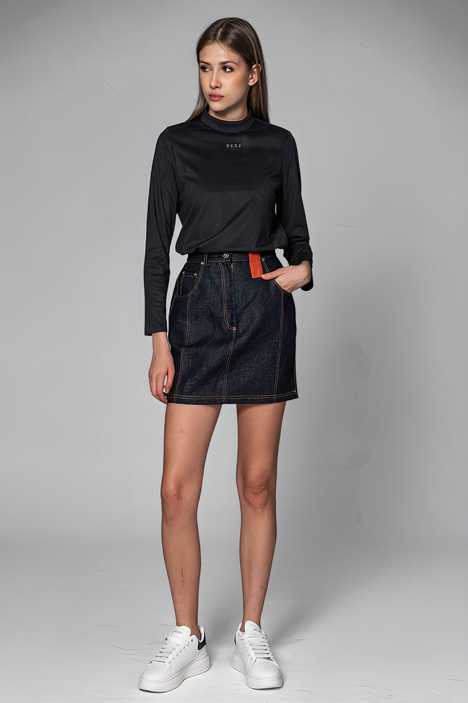 DARK BLUE HOUNDSTOOTH MIDI SKIRT