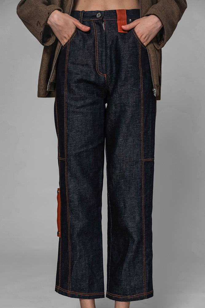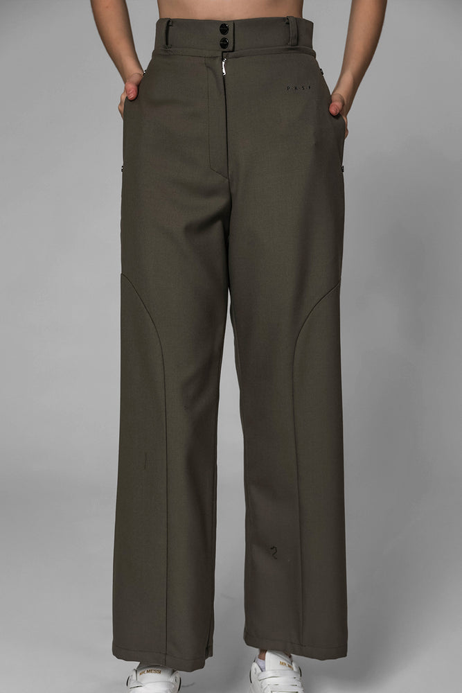 DARK GREEN/BLACK CURVED PANEL STRAIGHT PANTS