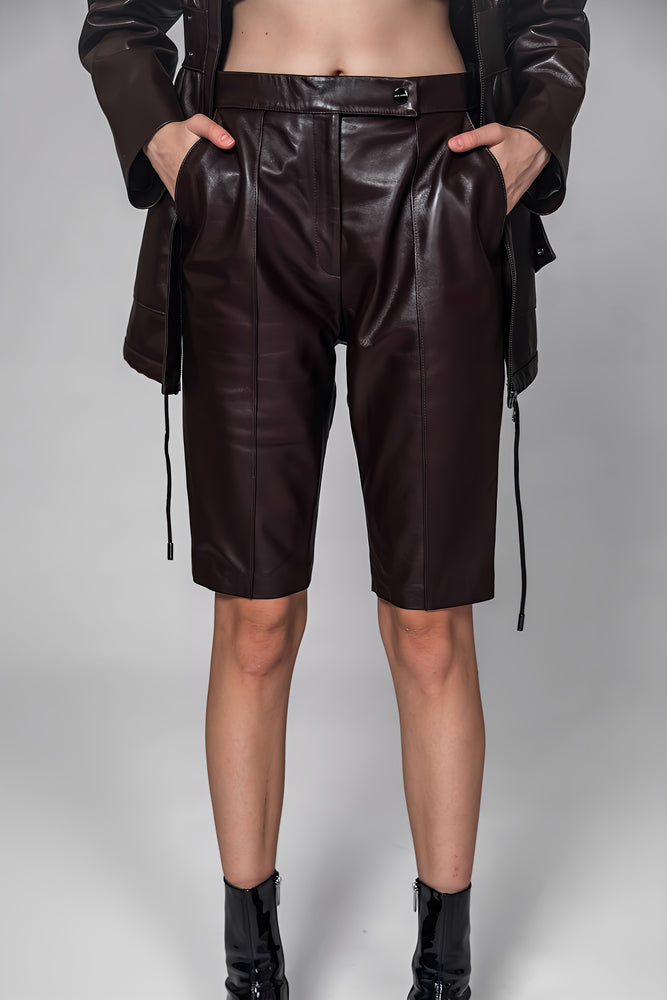 BLACK/BROWN GENUINE LEATHER BERMUDA SHORTS