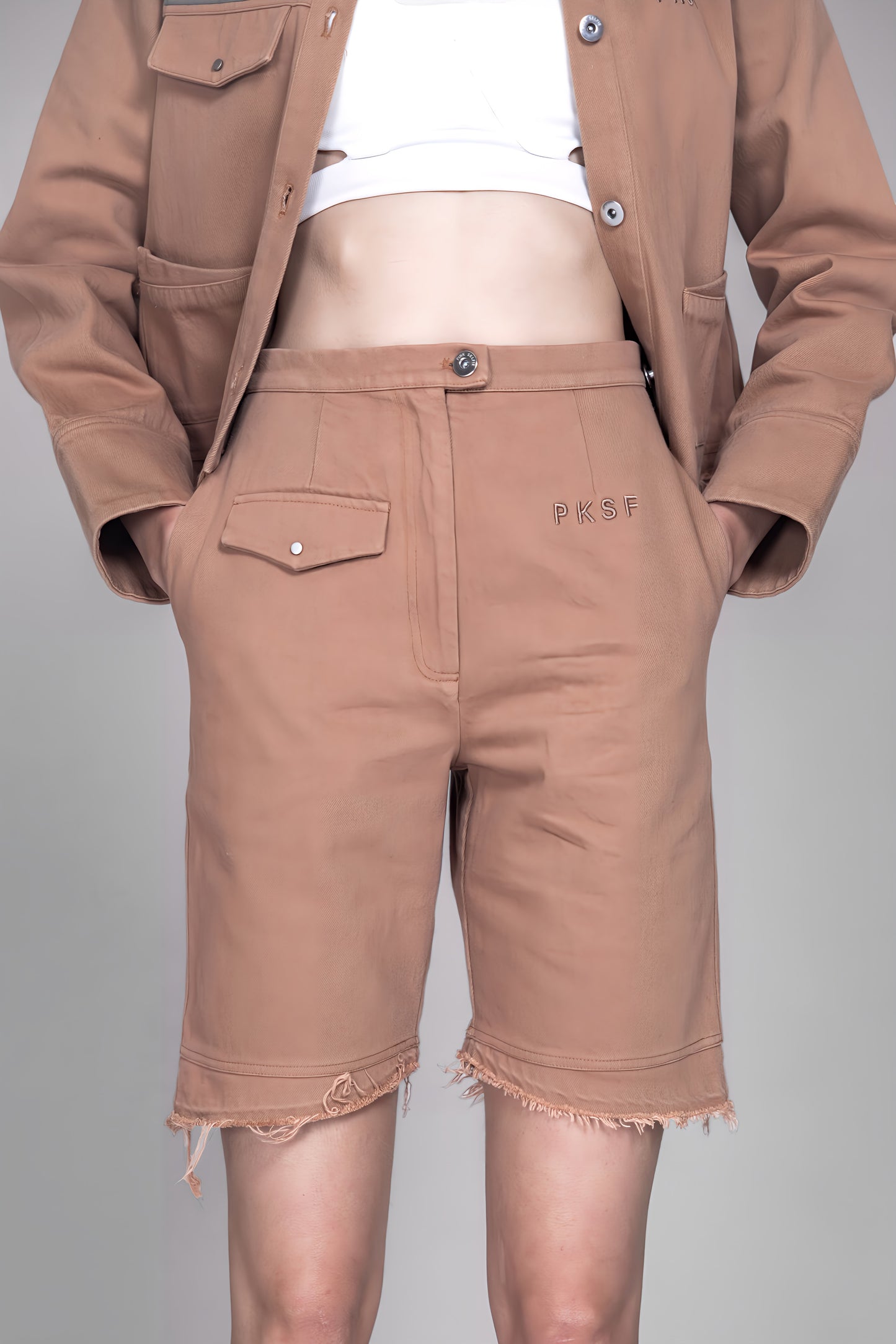 LIGHT YELLOW / SKIN BROWN HEAVY COTTON GRADIENT WASHED DENIM SHORTS