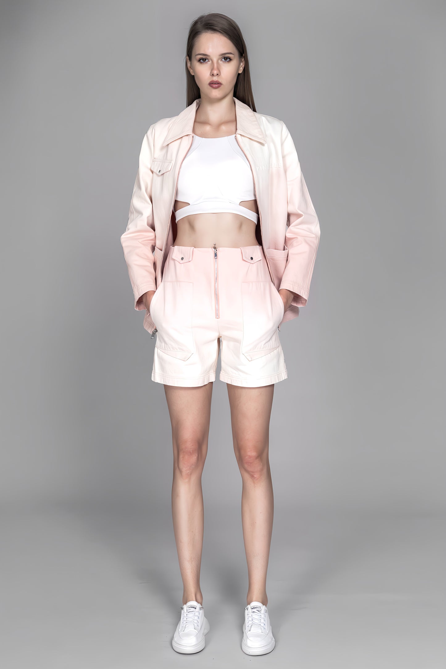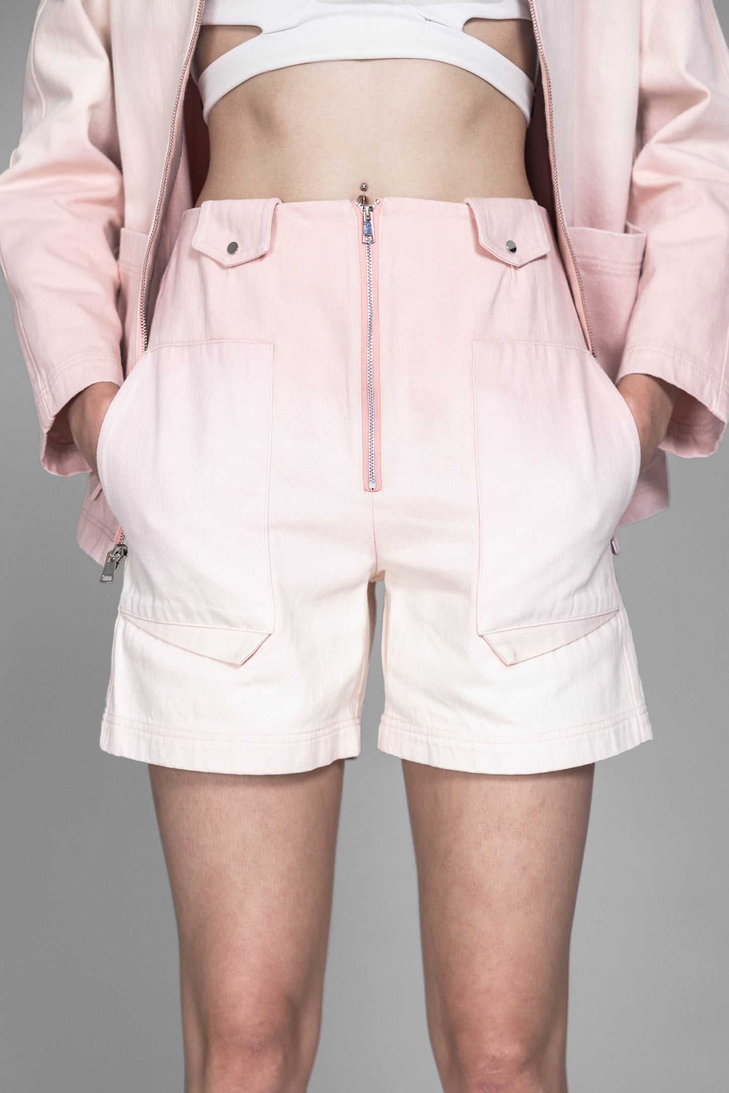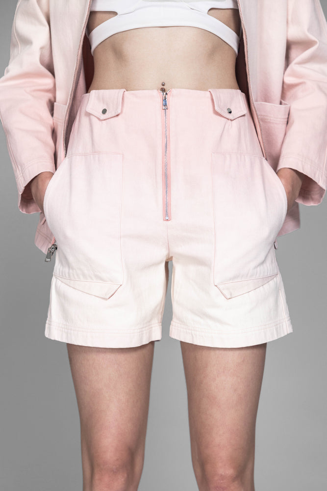 ICE BLUE/EXTRAORDINARY PINK THICK COTTON GRADIENT WASH DENIM BERMUDA SHORTS