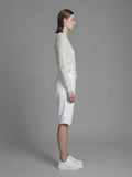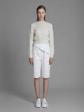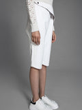 BLACK/WHITE FLAP LEATHER KNEE-LENGTH SHORTS