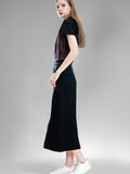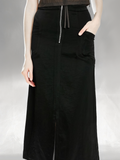 DARK TWILL SATIN ALINE SLIT SKIRT