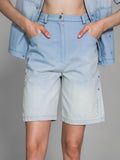 ICE BLUE/EXTRAORDINARY PINK THICK COTTON GRADIENT WASH DENIM BERMUDA SHORTS