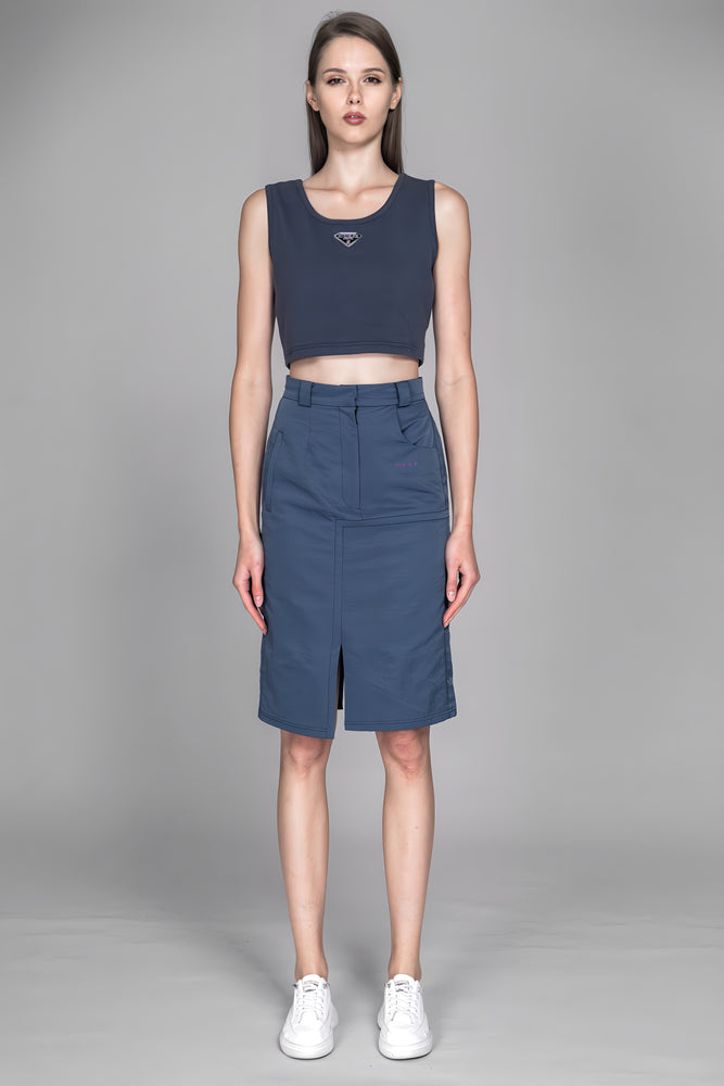 BLACK COTTON GAUZE LOGO LONG SKIRT