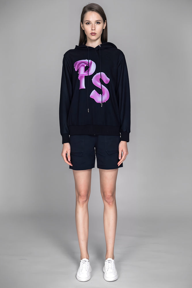 BLACK/GREEN WOOLEN PS PRINT LONG HOODIE