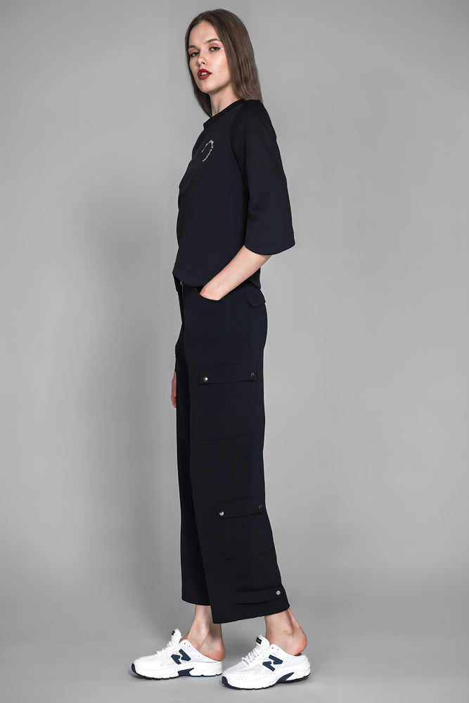 BLACK COTTON GAUZE FUTURISTIC TOP