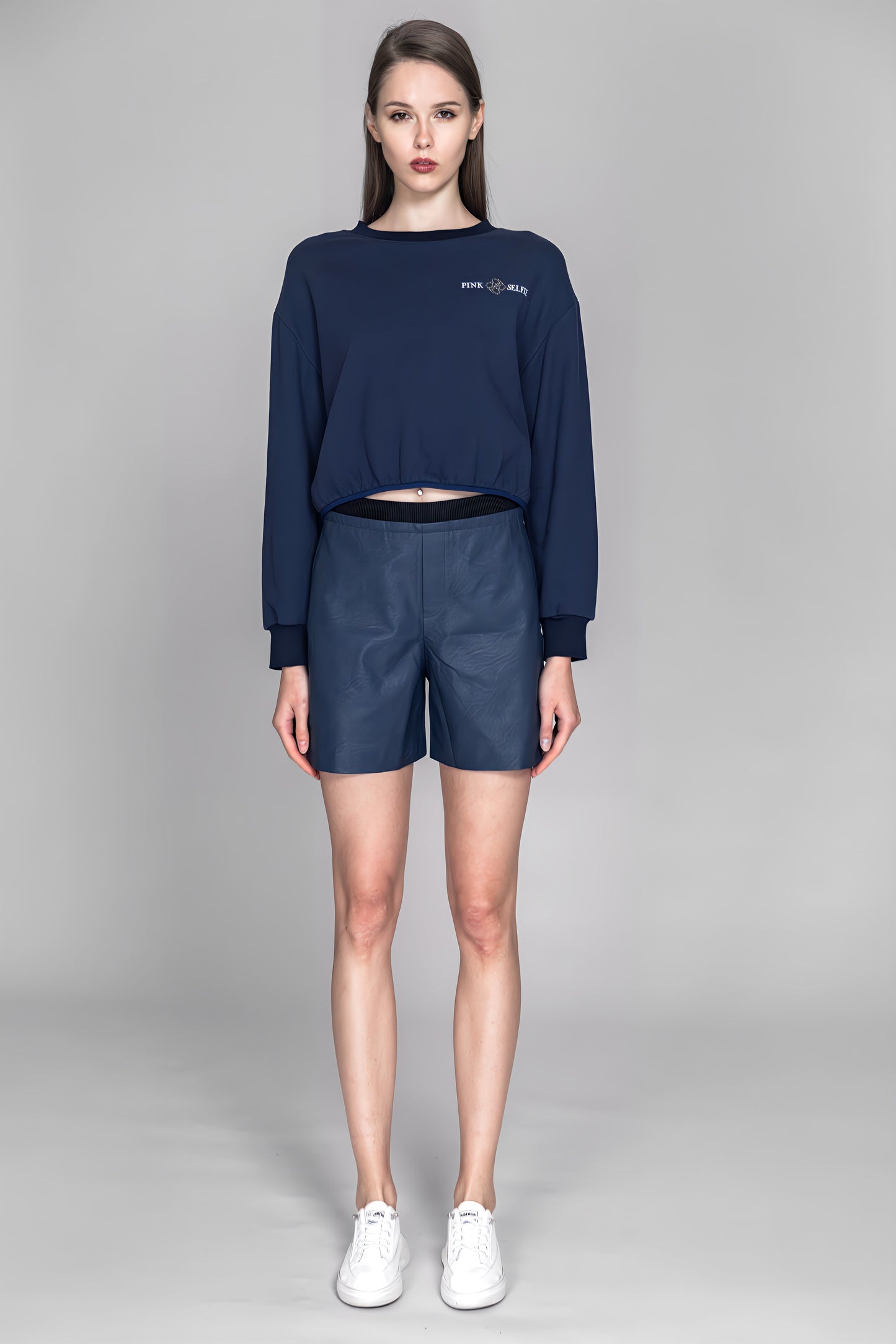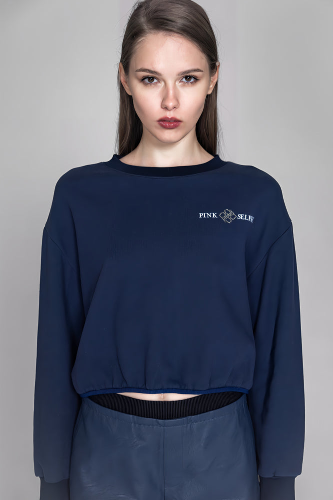 DARK BLUE / YELLOW CROPPED SWEATSHIRT TEE