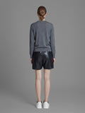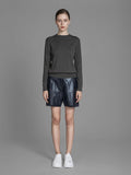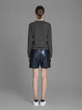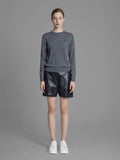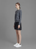 GRAY / DARK GREEN EMBROIDERED CREW-NECK LONG-SLEEVE TOP