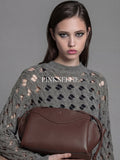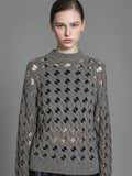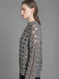 GRAY OPENWORK LONG-SLEEVE KNIT TOP
