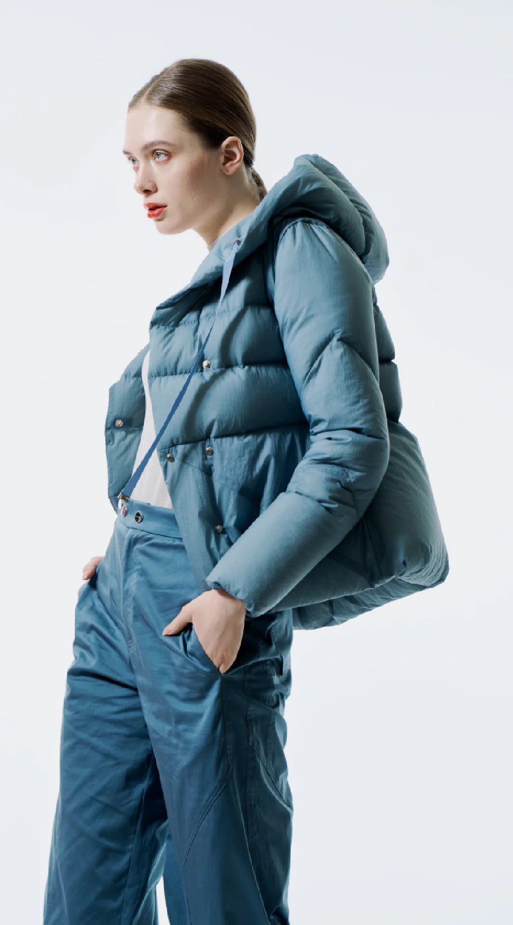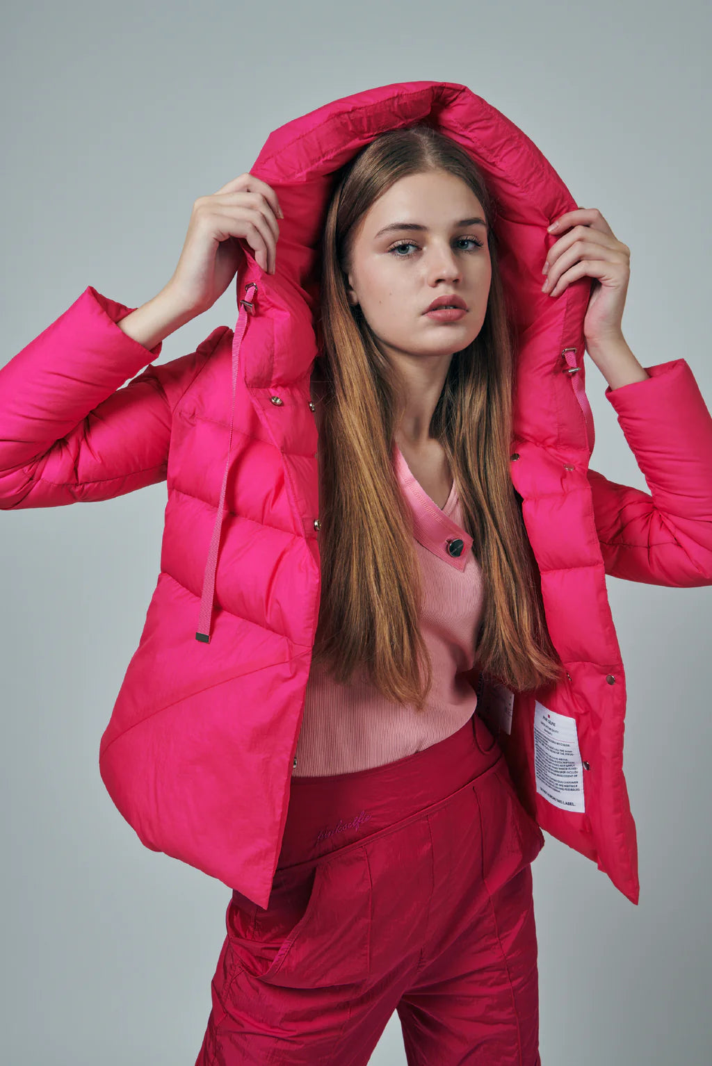In the process of crafting these down jackets, PINK-SELFIE' s design team has thoughtfully considered every detail. To ensure that the jackets are warm without appearing bulky, they have adopted unique futuristic tailoring techniques, achieving the perfect balance between fluffiness and insulation.